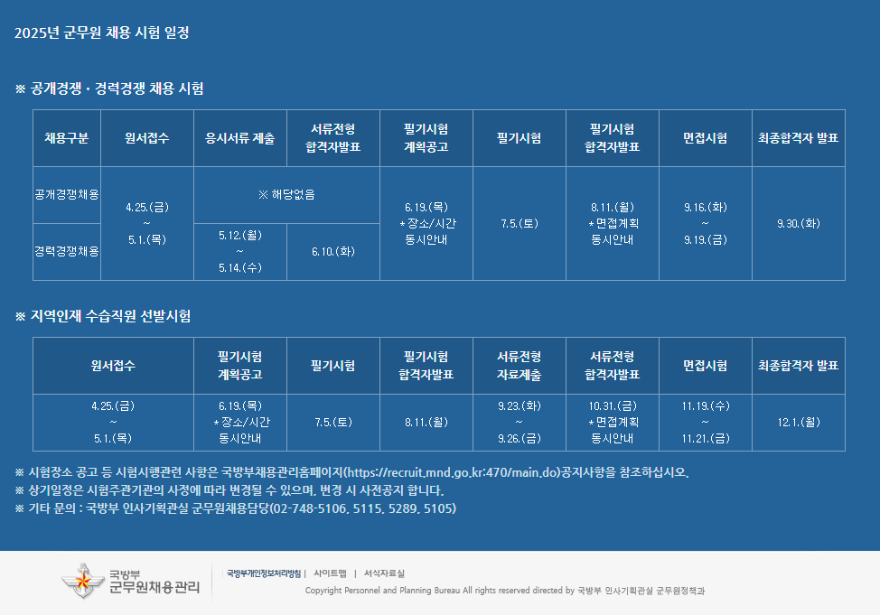2025 군무원 시험일정·시험과목·경쟁률 낮은 직렬 정리