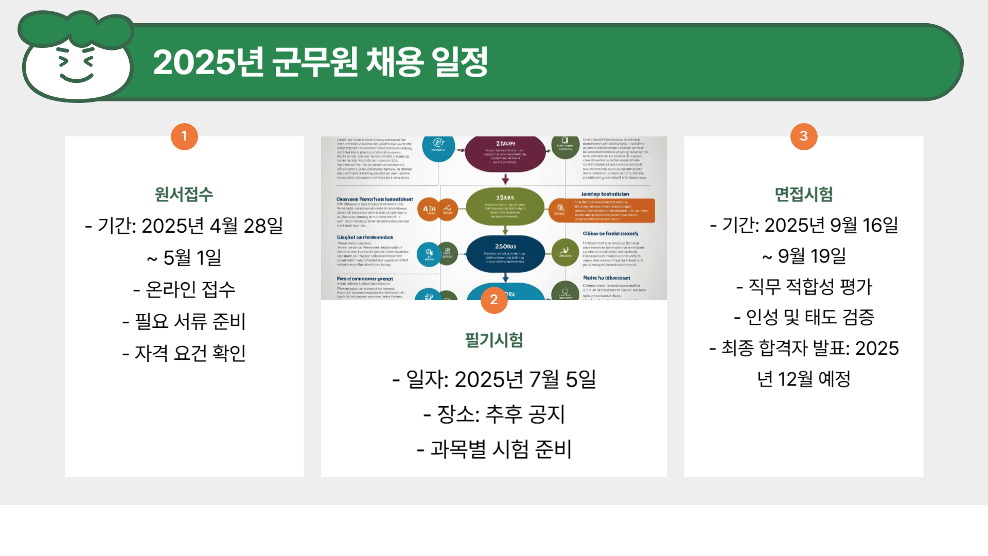 이 중 일부는 지역 인재 9급 특별채용으로 진행되며, 해당 채용은 2025년 4월 25일 원서접수를 시작으로 본격적인 시험 일정이 시작됩니다.