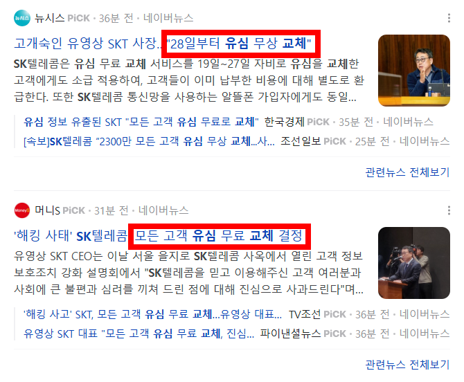 SKT, 유심 정보 유출 사태로 전 고객 유심 무상 교체 결정
