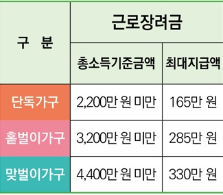 맞벌이 가구는 본인과 배우자 모두 연 300만 원 이상의 소득이 있어야 하며, 다음의 조건을 충족해야 최대 330만 원을 받을 수 있습니다.