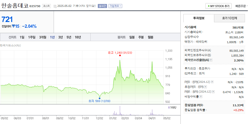 🔗 네이버 금융 – 한솔홈데코 - 최근 급등률: +24%