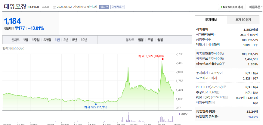 - 실시간 주가 확인: 🔗 대영포장 - 네이버금융