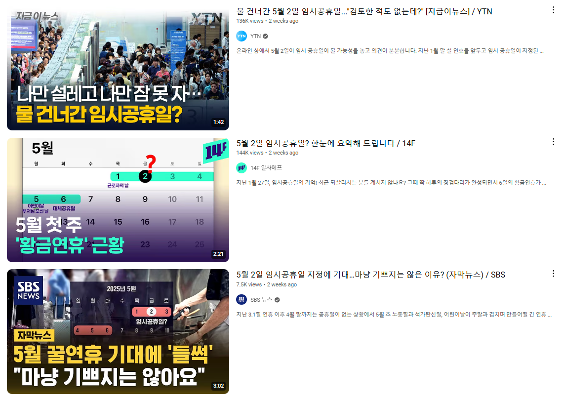 "2025년 5월 2일 임시공휴일, 당신의 생각은?"