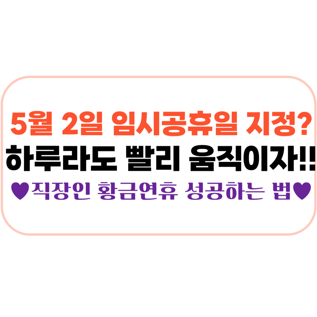 5월 2일이 임시공휴일로 지정되지 않는다면 연차를 미리 신청해서 황금연휴를 즐길 수 있습니다.